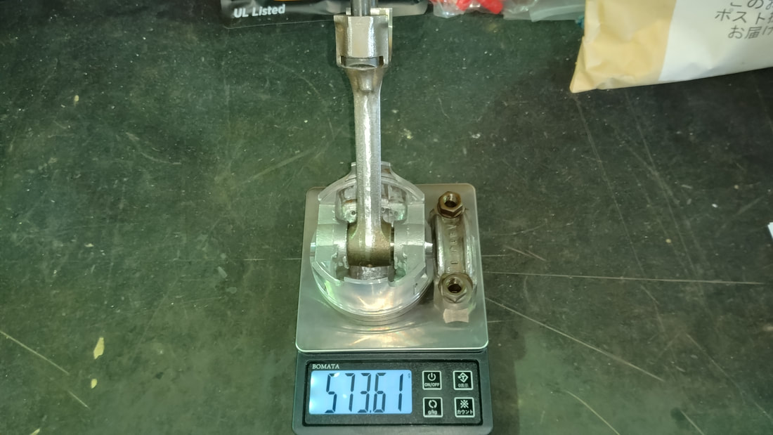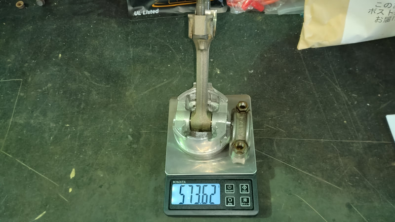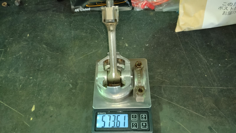当店の中古車でエンジンをオーバーホールして販売している車両は、画像の様にピストン、コンロッド等のパーツをバランス取して組んでいます。